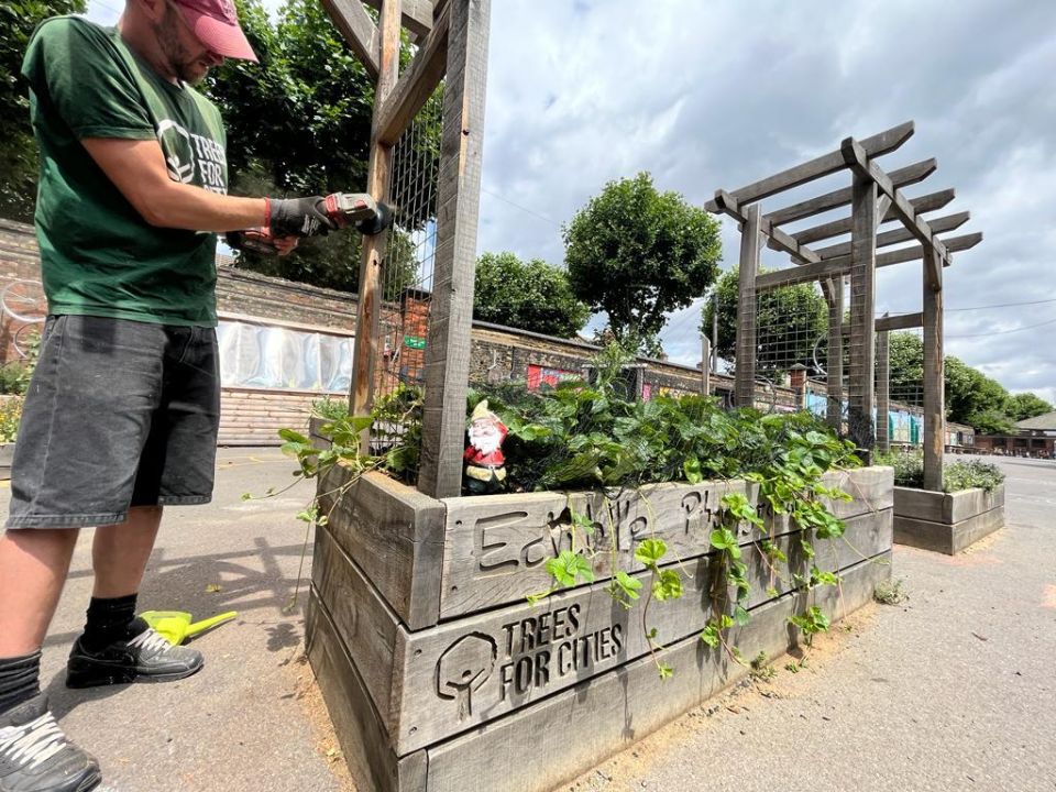 Gnomie spent a whole week with the Trees for Cities Build team to learn all the tricks of the trade. The Build team were busy focusing on creating sturdy raised garden beds for an Edible Playground at Upton Cross Primary School.